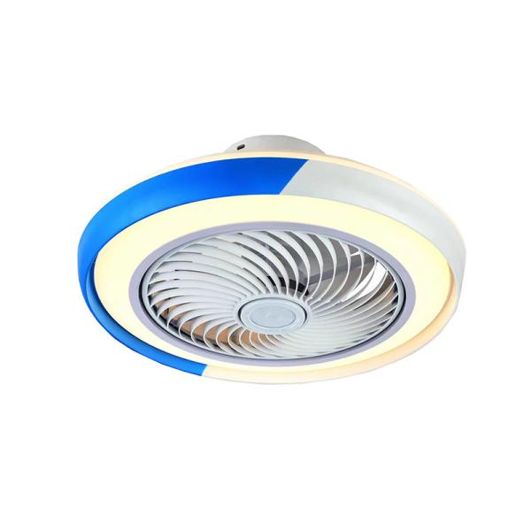Blue And White Enclose Bladeless Decorative Ceiling Fan Remote Control With Light